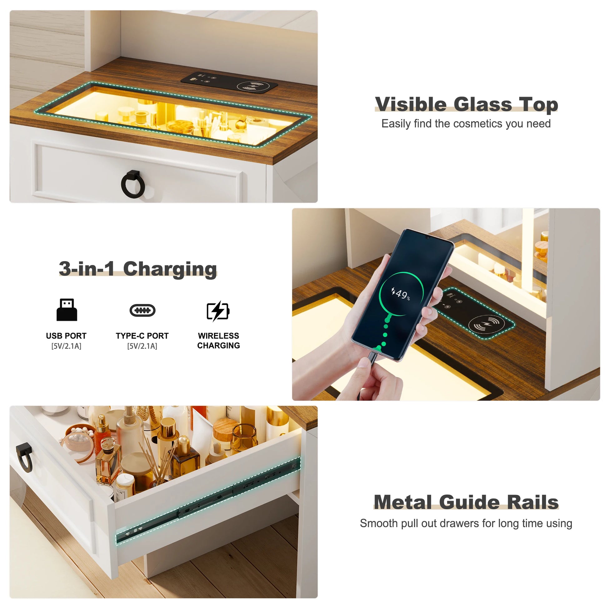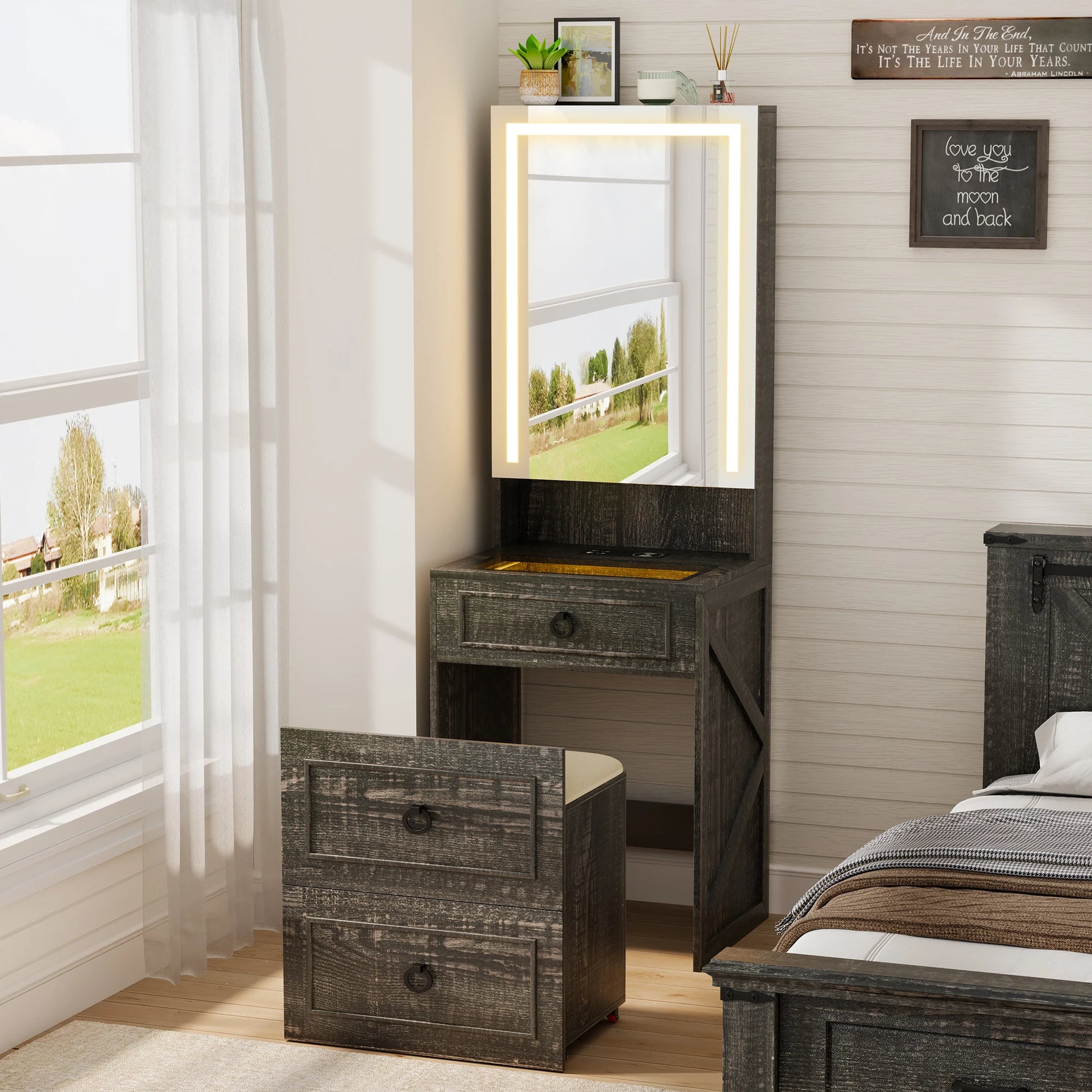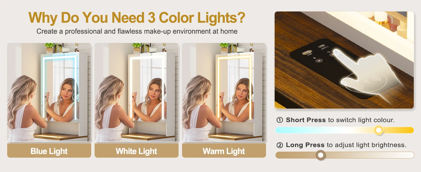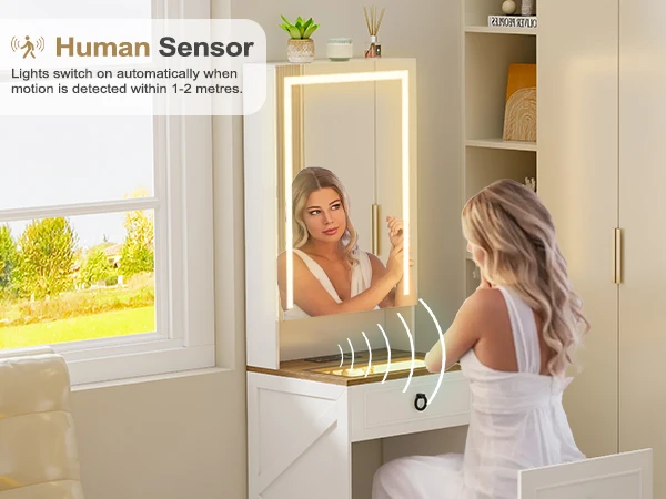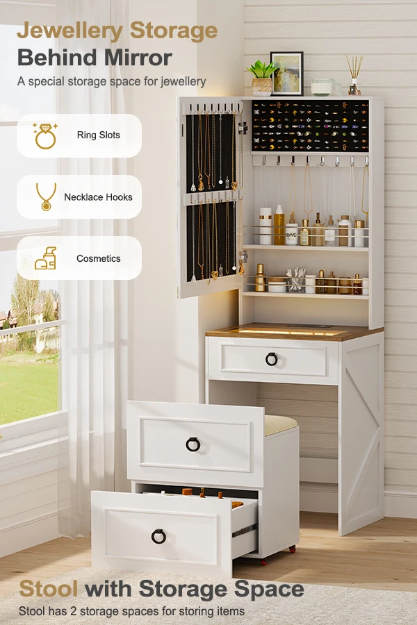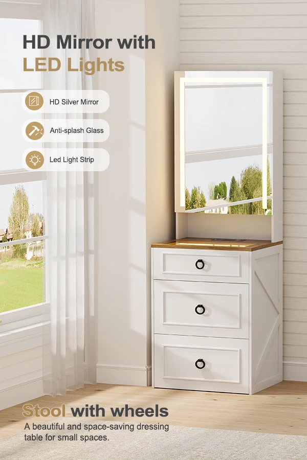 Small Compact Makeup Vanity Set with Hidden Storage Stool
